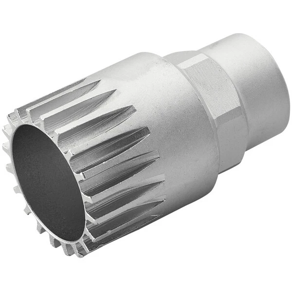Il est robuste pour sécuriser l’opération. Il s’associe à une clé de 24 mm ou à une clé à cliquet de 1/2” pour démonter facilement les boîtiers Shimano et ISIS.