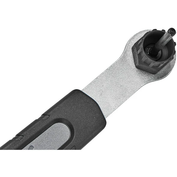 Il intègre un guide pour sécuriser l’opération. Il s’associe à un fouet à chaîne pour démonter facilement les cassettes Shimano HG.