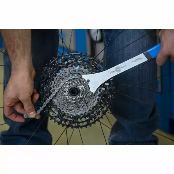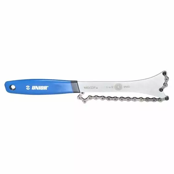 Le fouet à chaîne UNIOR est conçu pour le maintien des cassettes lors du desserrage de roues libres. La chaîne est positionnée sur les dents de roue libre et permet ainsi un travail efficace sans ripage ou endommagement des pignons.