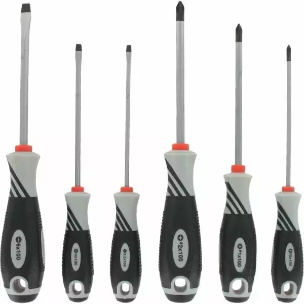 Le jeu de 6 tournevis professionnels VAR est constitué de 3 lames plates 3,2/4/6 mm. et de 3 lames Phillips n°0, n°1 et n°2.