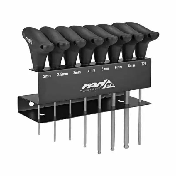 Le kit inclus les clés 2, 2.5, 3, 4, 5, 6, 8 mm et T25, ainsi qu’un support de rangement mural très pratique pour retrouver rapidement la clé et organiser son atelier.