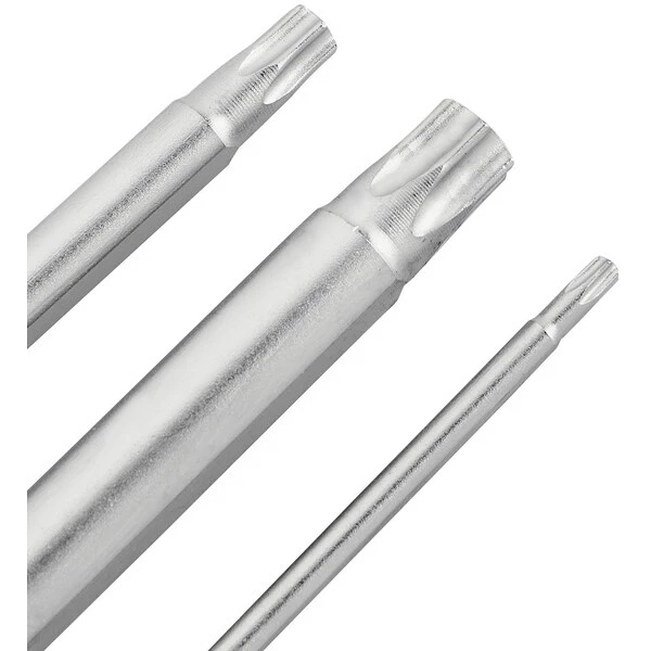 Le jeu de clé Torx est disposé dans un support en plastique adapté.