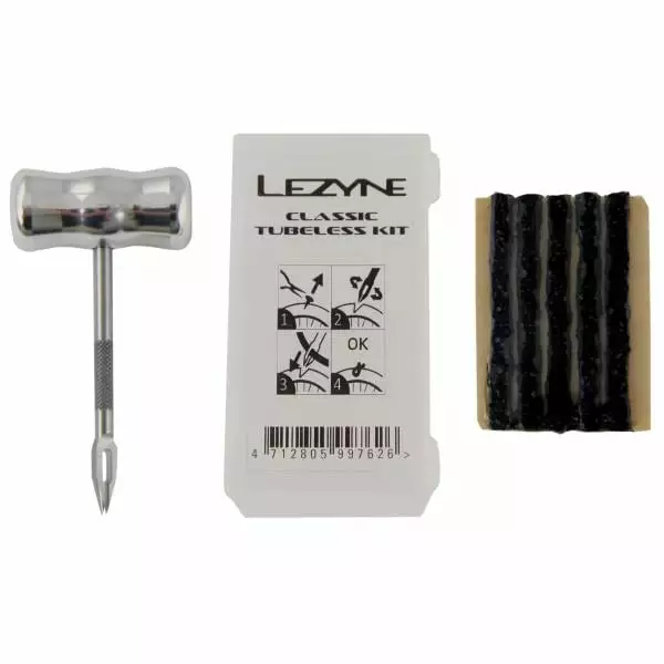 Le kit de réparation tubeless LEZYNE Classic, comprenant 5 mèches, apporte une solution de dépannage rapide en cas de crevaison sur pneu tubeless. Ces mèches s’insèrent directement dans le pneu à l’aide de l’outil 2 en 1 fourni (remodelage du trous et implantation du mèche).