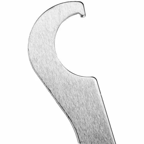 Découpée au laser, cette clé pour boîtier de pédalier HCW-5 est précise et solide. Elle possède un côté à simple crochet et un autre avec 3 ergots pour les diamètres extérieurs de bague de 40 à 46 mm.